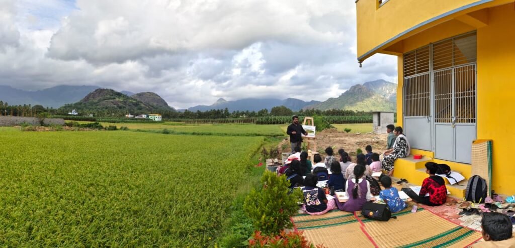 Our one-day sketching trip to Thirparappu was all about learning art in a natural setting. Students enjoyed sketching the waterfalls and greenery while Masters gave live guidance. It was not only a drawing activity but also a refreshing break where nature became their classroom.